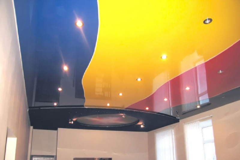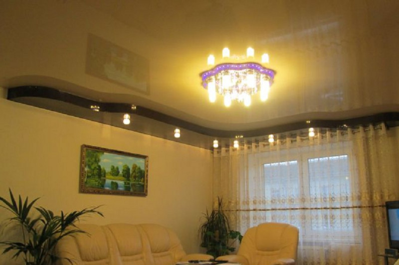 Оно может быть абсолютно любым, главное условие – лампочки не должны перегревать полотно, из какого бы материала оно ни было. Ни ткань, ни пленка ПВХ не выносят слишком высоких температур: плавятся, меняют цвет.