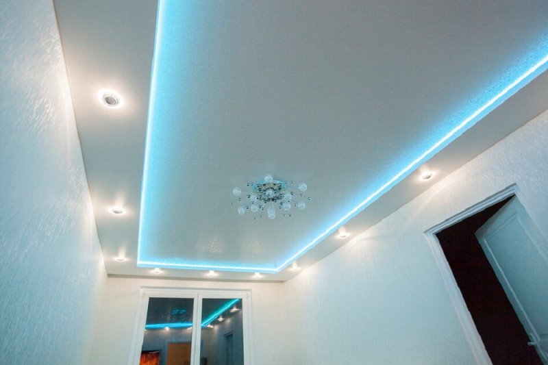 Есть одно непреложное правило: поверхность полотна не должна нагреваться. В остальном вы можете выбрать любой способ освещения коридора.