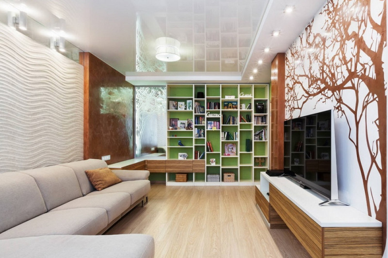 Одним из основных положительных свойств такой отделки по праву считается ее способность зрительно увеличивать комнату, придавать ей больший объем.