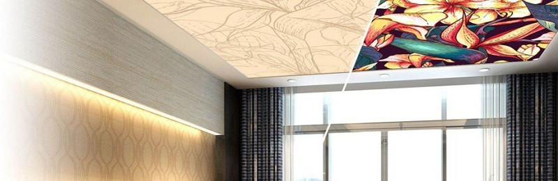 Вам нужно выбрать между тканью и ПВХ. У каждого полотна свои плюсы, например, ПВХ в случае залива соседями не только не пострадает, но и защитит интерьер.