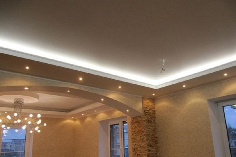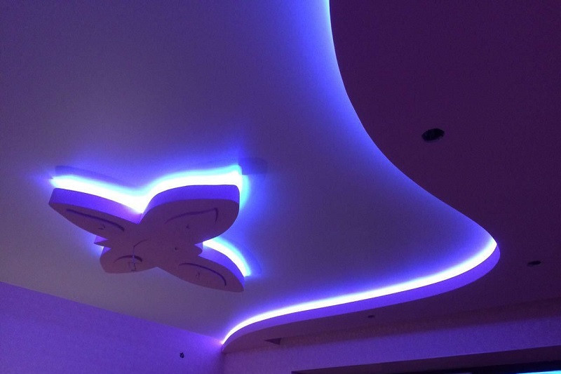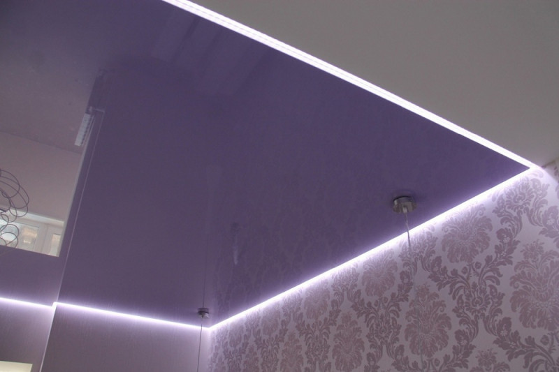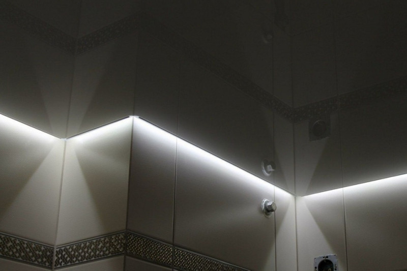Если пространство небольшое, оптимальным будет взять светодиодные ленты, не отнимающие высоту стен и встраиваемые непосредственно в потолочную поверхность.