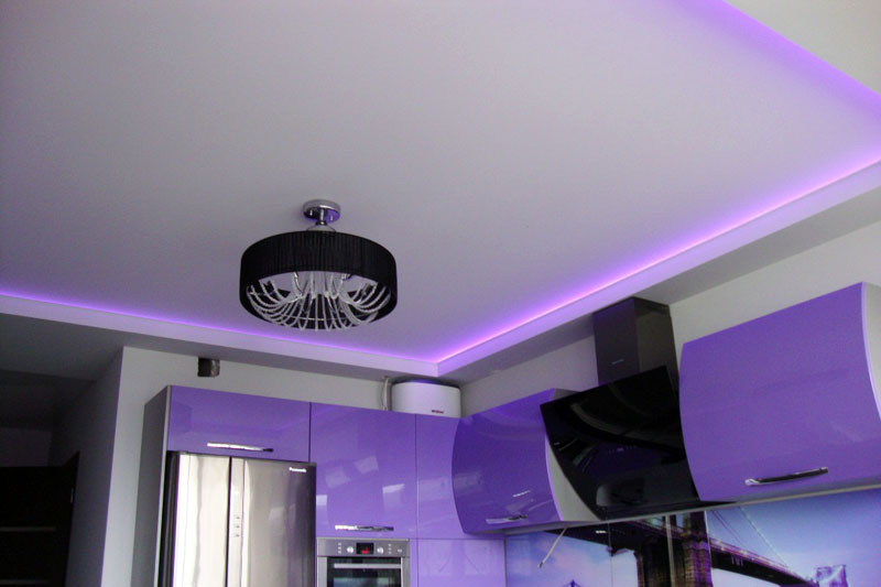 Все зависит от того, какую конструкцию вы выберете. Если поверхность нужна другого оттенка, обсудите это с мастером на замере, он порекомендует подходящий способ монтажа света.